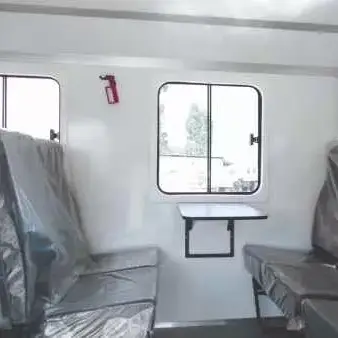 Данные материалы позволяют поддерживать комфортную среду и эксплуатировать фургон при температуре окружающей среды от – 40 С° до + 40 С°. Кузов-фургон разделен глухой перегородкой на два отсека: пассажирский и грузовой. Пассажирский отсек, расположенный в передней части фургона, оборудован комфортными сидениями и предназначен для перевозки 12 человек.