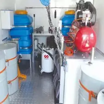 Фургон глухой перегородкой разделен на пассажирский и рабочий отсеки. Пассажирский отсек расположен в передней части фургона и оборудован комфортными и безопасными сидениями для перевозки 3-х пассажиров. Рабочий отсек оборудован семью емкостями для раздачи технических жидкостей, двумя емкостями для сбора отработанных жидкостей, и системами раздачи и забора состоящих из насосов и катушек со шлангами и пистолетами. Для обеспечения удобной работы катушки расположены в отдельном отсеке с доступом снаружи.
