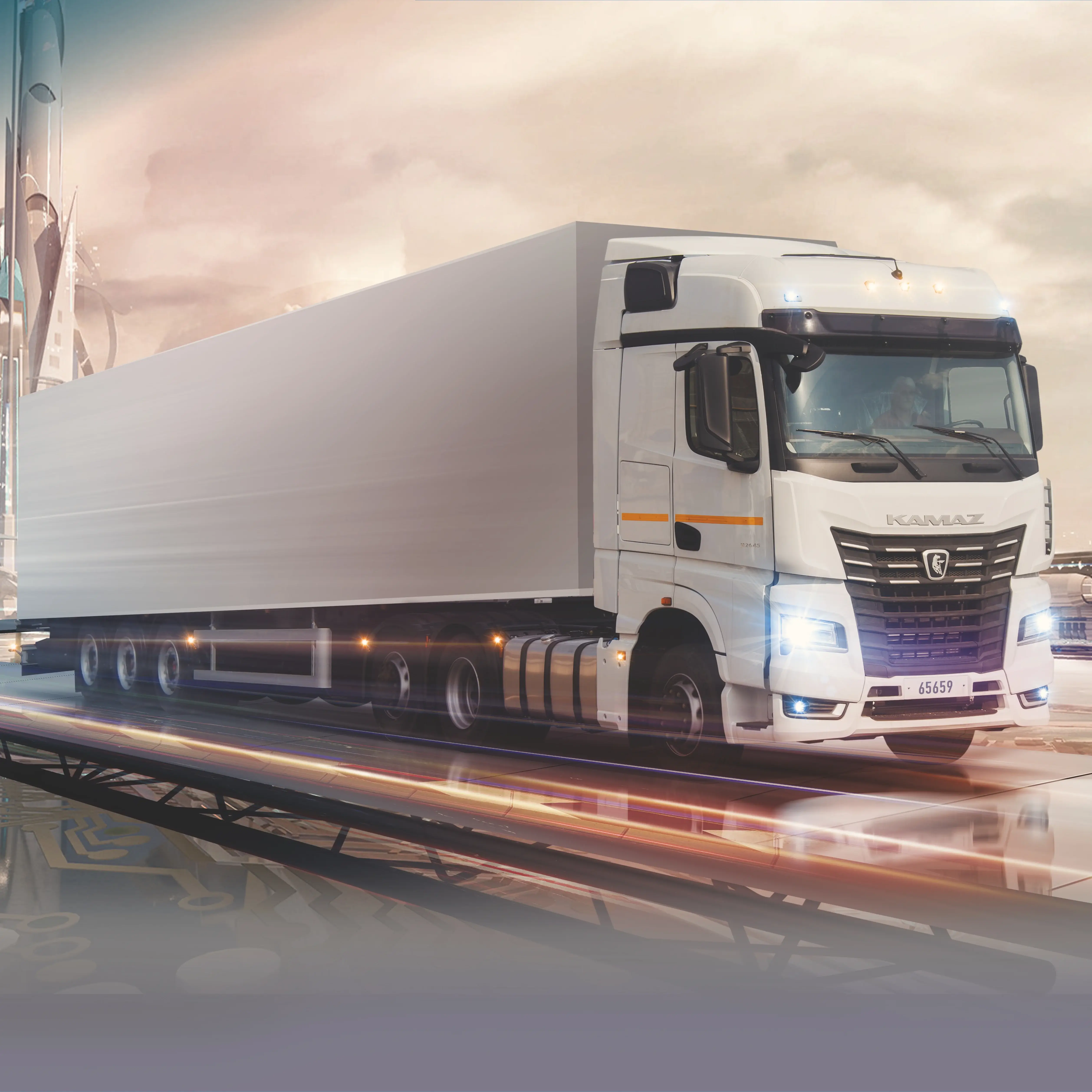 Современная просторная кабина, мощный двигатель KAMAZ Р6 на 482 л.с., роботизированная коробка передач.