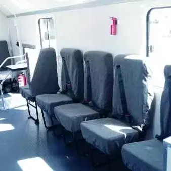 Дверь аварийного выхода расположена на задней стене фургона, что повышает безопасность во время ДТП и чрезвычайных ситуациях. Комфорт и безопасность пассажиров обеспечивают мягкие сиденья с 3-точечными ремнями безопасности. В салоне размещено 14 одноместных сидений расположенных по одному. Такая компоновка салона позволяет максимально увеличить жизненное пространство каждому пассажиру и обеспечить комфорт при дальних рейсах.