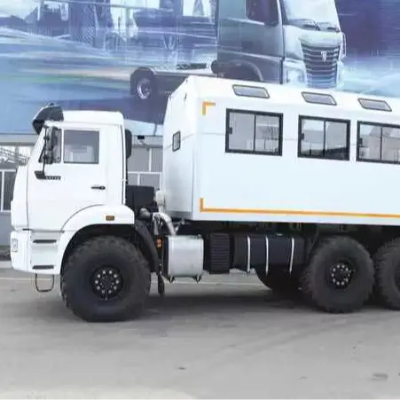 Вахтовый автобус служит для перевозки пассажиров по дорогам общей сети и бездорожью. Кузов-фургон автобуса выполнен из многослойных сэндвич-панелей на металлическом каркасе, что обеспечивает надежность и прочность конструкции во время существенных нагрузок при езде по пересеченной местности.